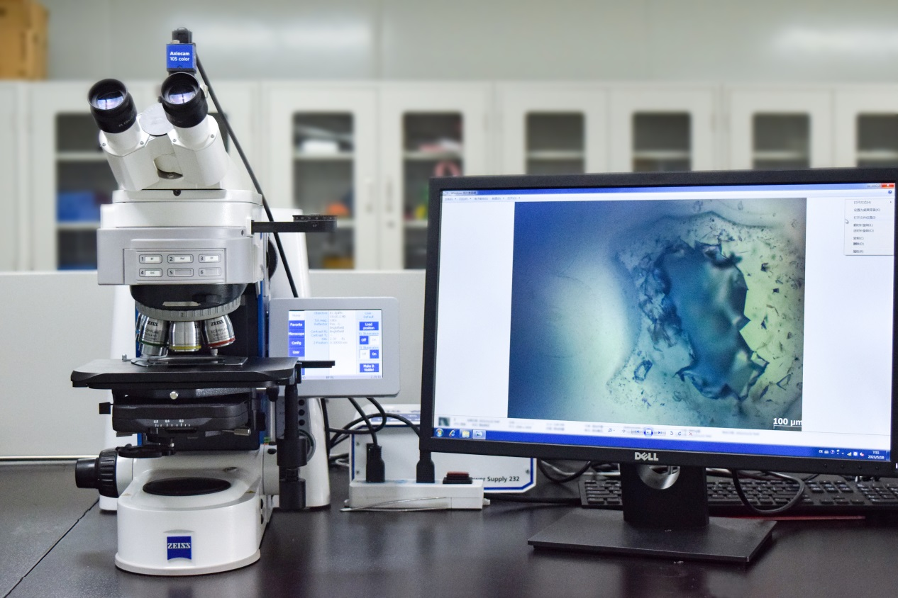 可做透射、反射及微分干涉拍照,配备上下偏光片,可做单偏、正交观察。最大放大倍数为1000。可进行包裹体微观拍照,进行Z轴叠加拍照并合成。