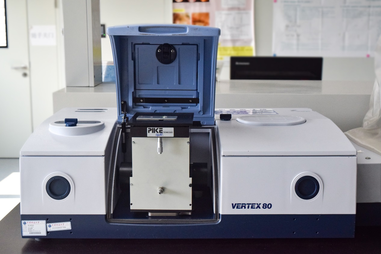 测试范围15000-400cm-1,分辨率可至1cm-1。可做红外反射、ATR漫反射、红外透射、KBr压片透射等测试。