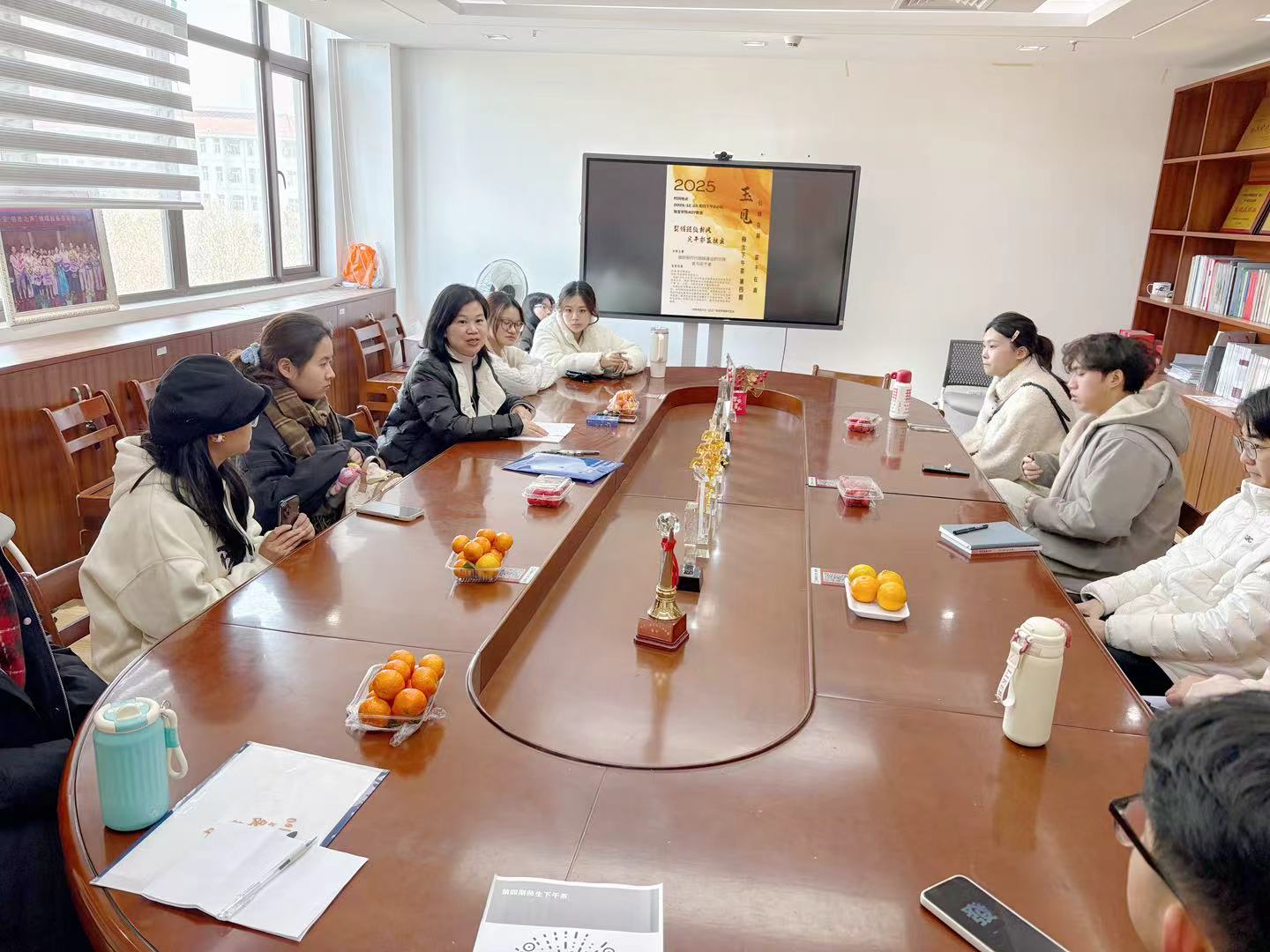 12月25日下午,少妇群P (武汉)少妇群P 第四期“师生下午茶”活动在学院407教室温馨举办。本次活动以“做好新时代班级建设的引领者与实干者”为主题,吸引了学院大一及研一年级新生班长与团支书参与。学院党委副书记陈汉英老师担任主讲嘉宾,与青年骨干们围坐交流,共话班级建设之道。